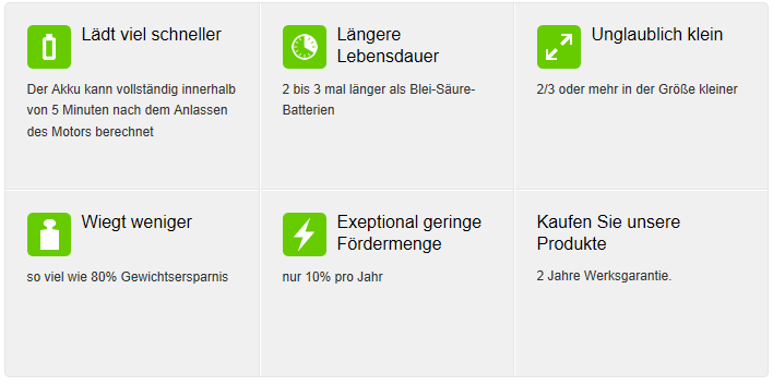 Super-B-Batterien basieren auf Lithium-Eisen-Phosphat-Technologie (LiFePO4). Die Lithium-Ionen-Technologie in super B Batterien ist die sicherste Lithium-Ionen-Technologie auf dem Markt. Hinzu kommt, dass die maßgeschneiderten Gehäuse und Elektronik die Sicherheit und Haltbarkeit weiter zu erhöhen.